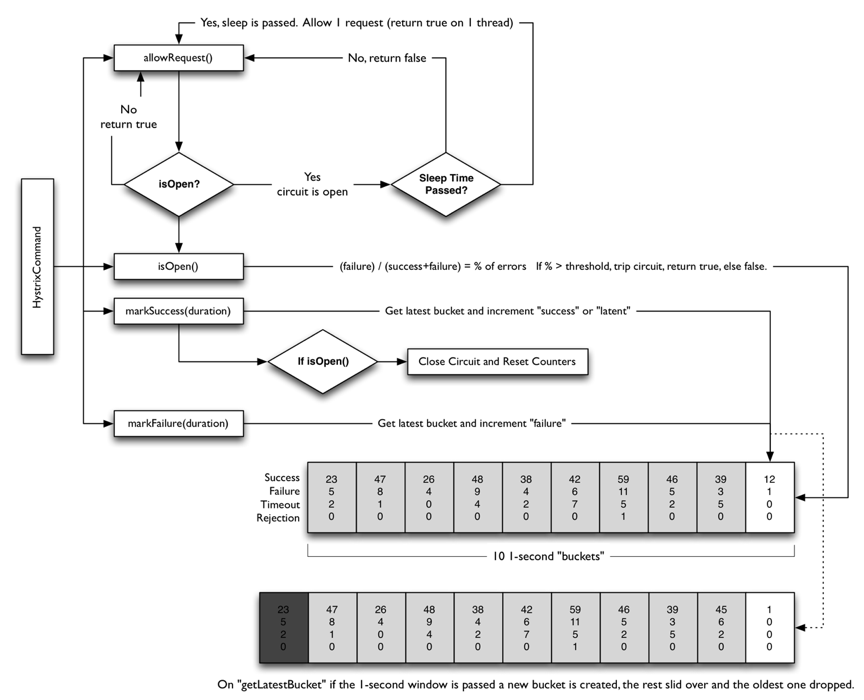 下图是Netflix的开源项目 Hystrix 中的熔断的实现逻辑( 其出处在这里)。