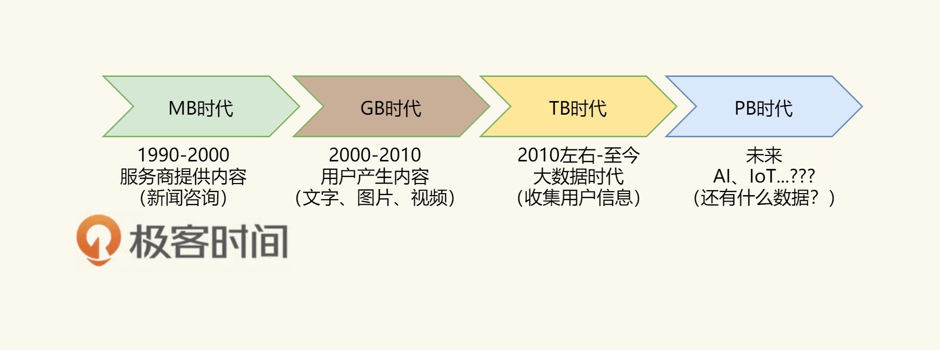 从一开始,我们处在MB时代,那个时候,电脑也是几百兆的硬盘就够了。因为那个时候的信息量不够大,只有内容服务提供商在提供内容,他们主要以新闻资讯为主,所以数据还不多。