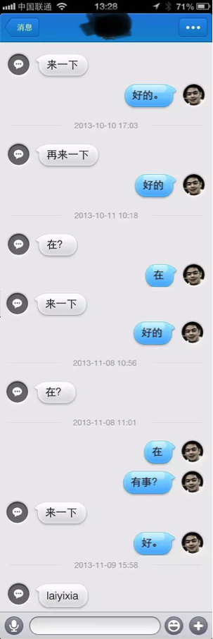 讲了这么多,还是让你来开心一下吧。下面这个图是我在某国内互联网公司工作的时候和我老板的聊天记录。是的,就只有这些信息,每次看到这个聊天记录时,我都会有一种莫名的喜感。结合这节课的主题,也给你开心开心。