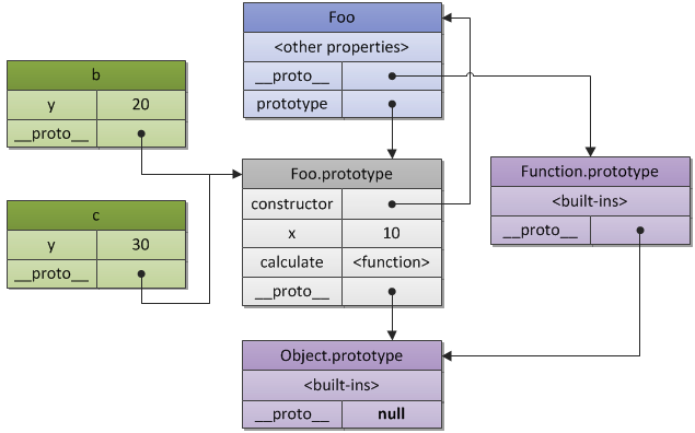 b.__proto__.calculate === Foo.prototype.calculate // true